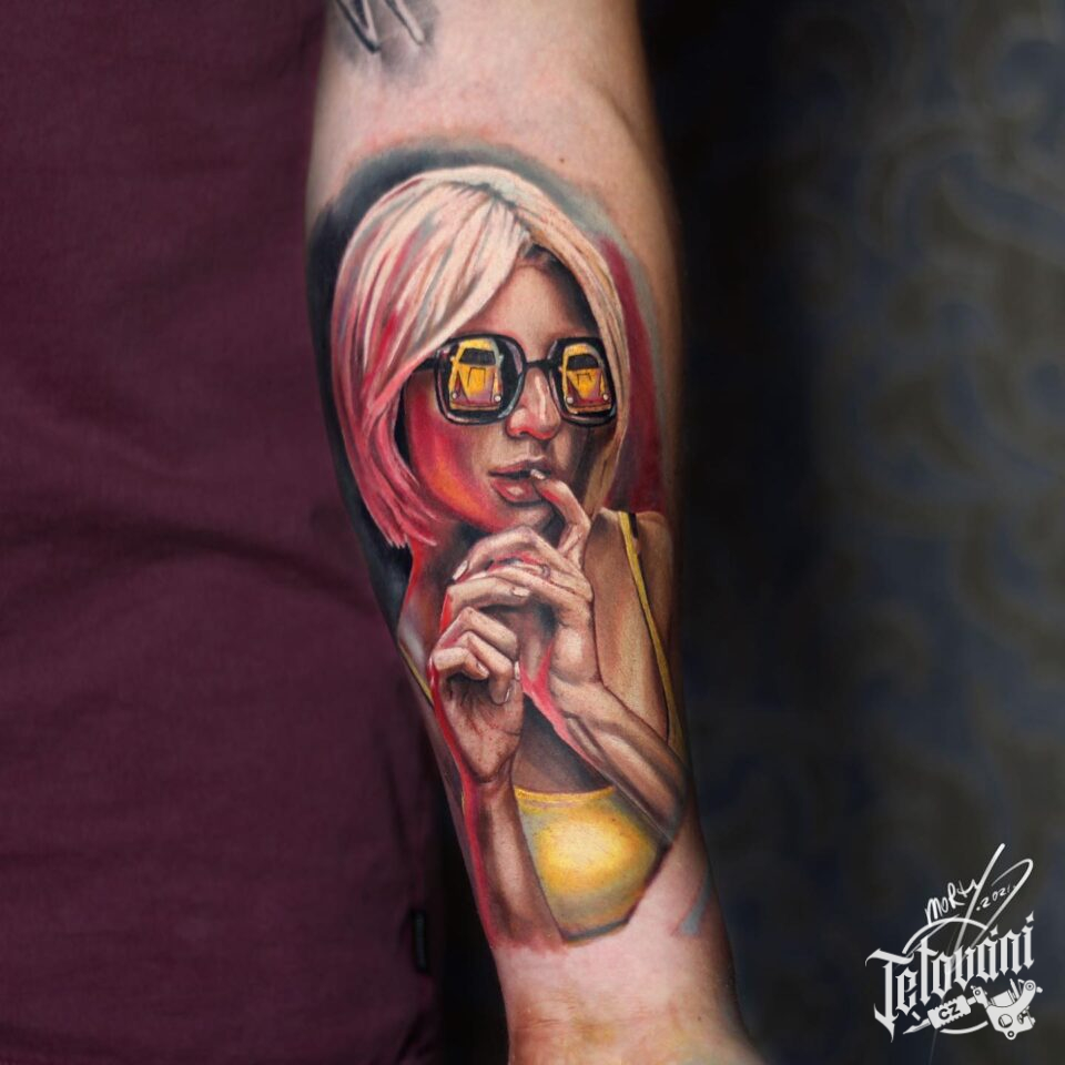 Tetování žena, portrét na předloktí