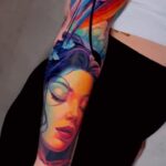Tetování žena, portrét, zvíře ryba na předloktí