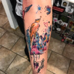 Tetování žena princezna s motýli na předloktí