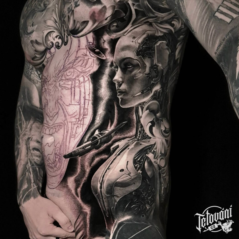 Tetování žena robot na bok