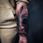 Tetování žena s brýlemi na předloktí