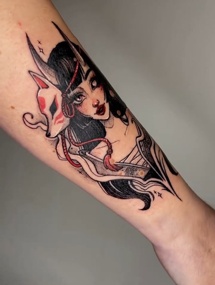Tetování žena s ďáblem na rameno