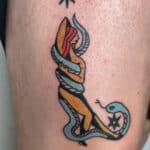Tetování žena s hadem na stehně