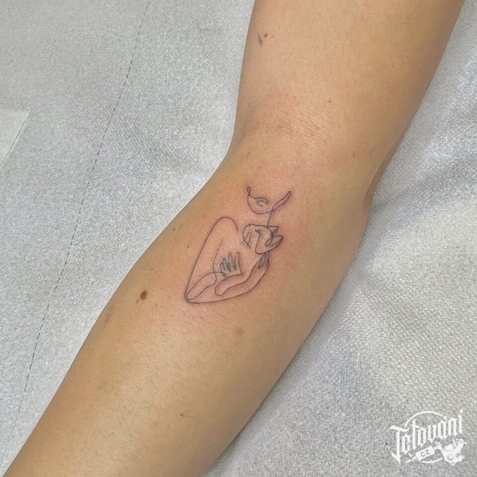 Tetování žena s kočkou na předloktí
