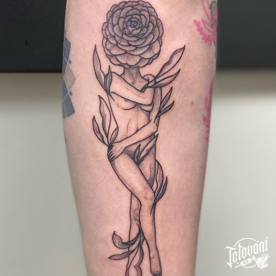 Tetování žena s květinou na předloktí
