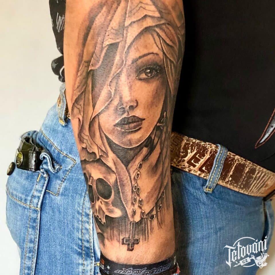 Tetování žena s lebkou na předloktí