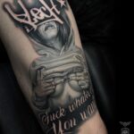 Tetování žena s nápisy na paži