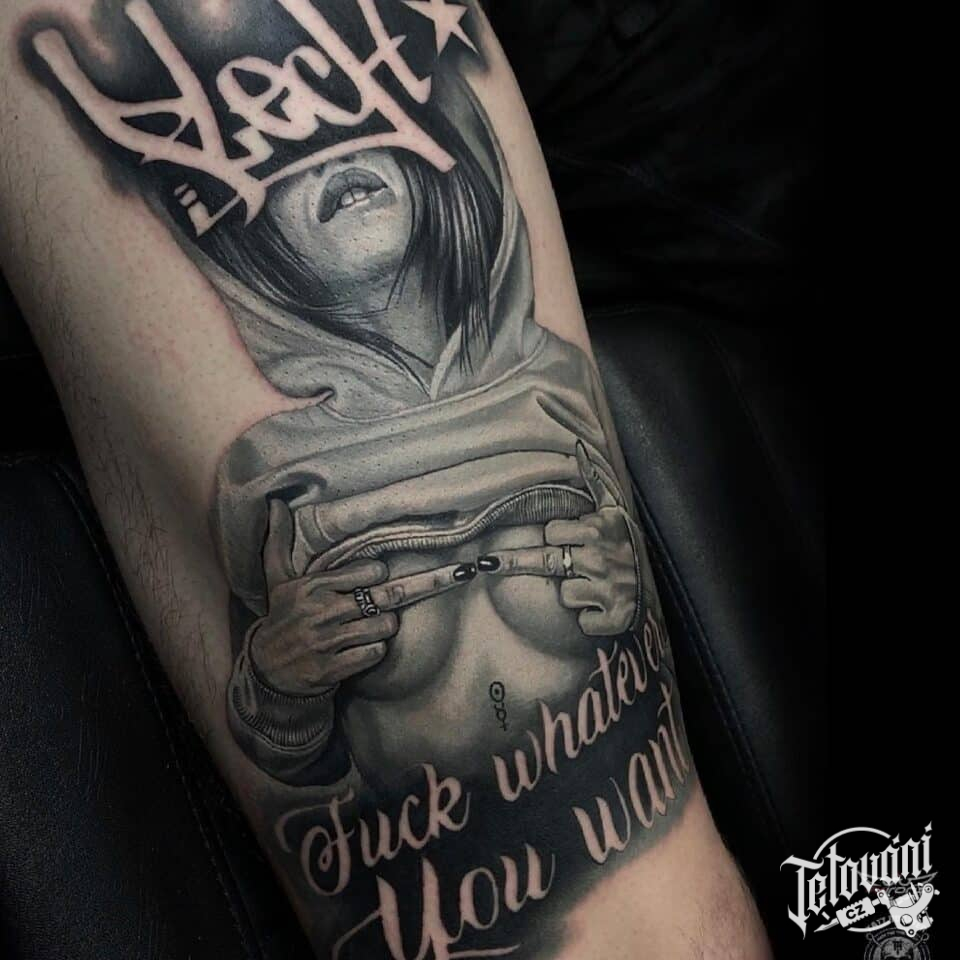 Tetování žena s nápisy ...