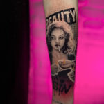 Tetování žena s nápisy na předloktí