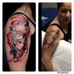 Tetování žena s vlkem na rameno