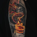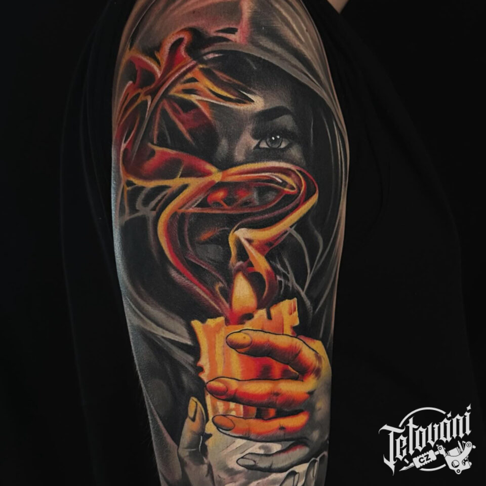 Tetování žena se svíčkou, předmět na rameno