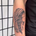 Tetování žena se zavázanými oči na předloktí