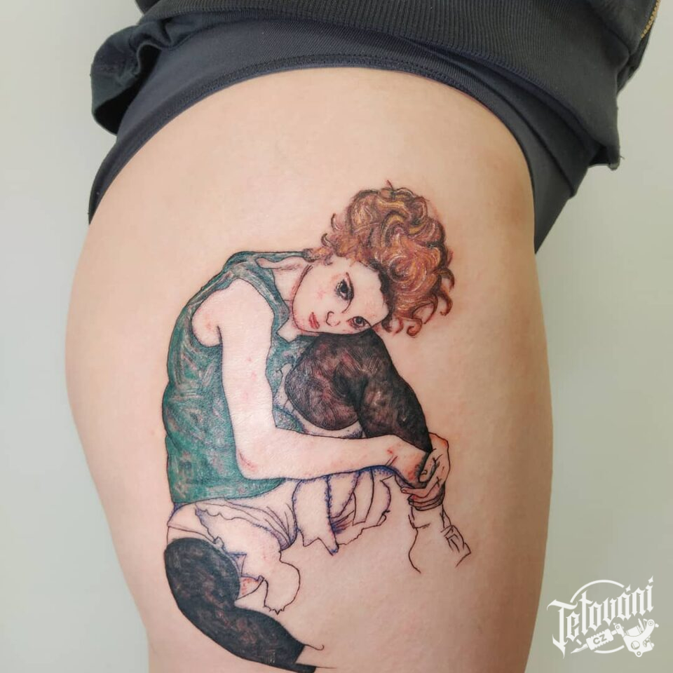 Tetování žena, symbol na bok stehna