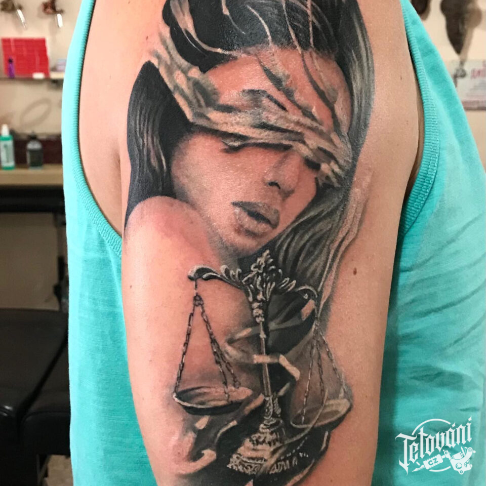 Tetování žena, symbol spravedlnosti