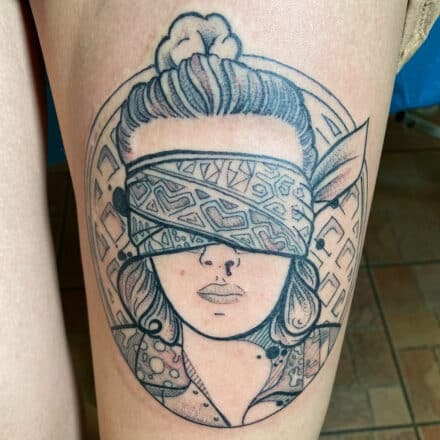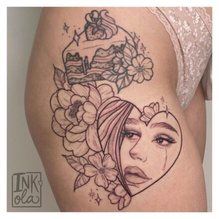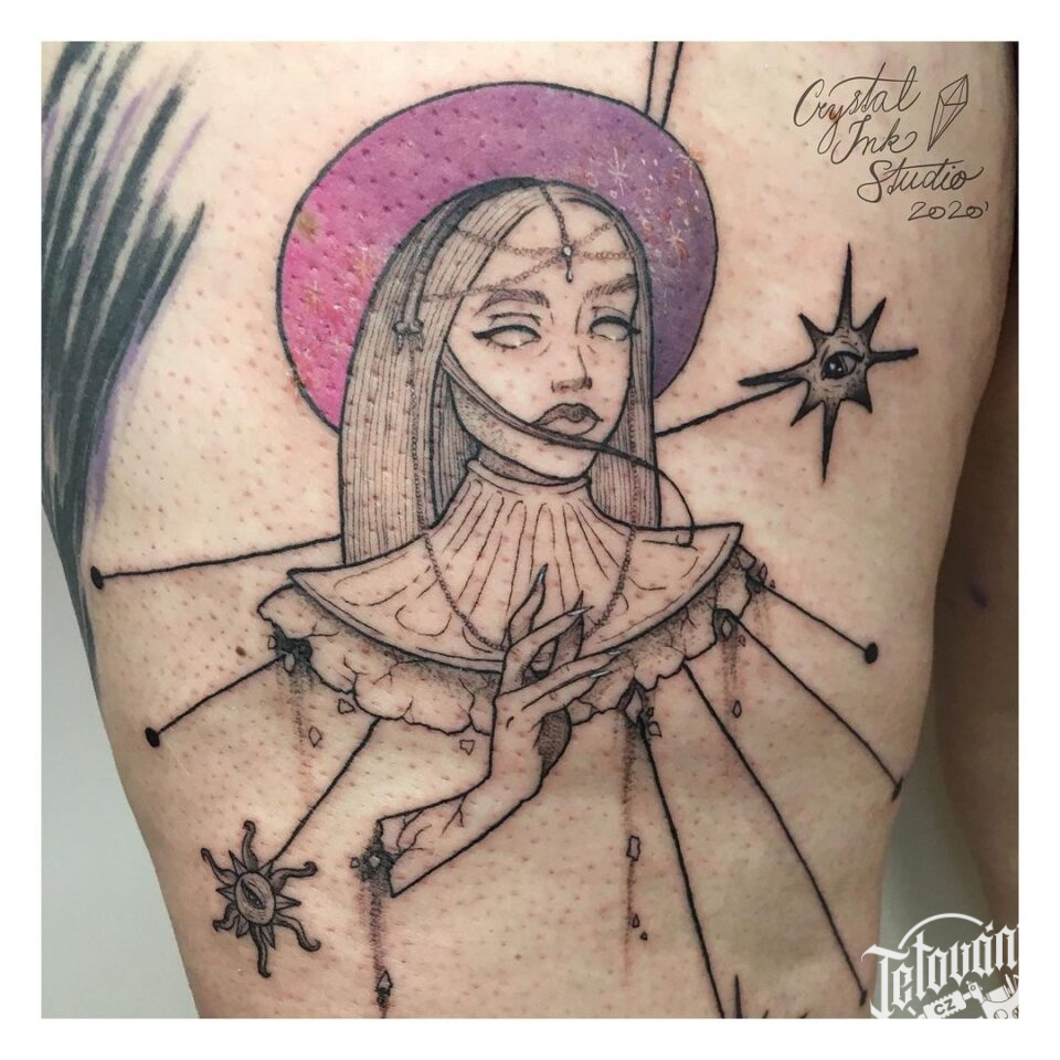 Tetování žena, symboly na stehno