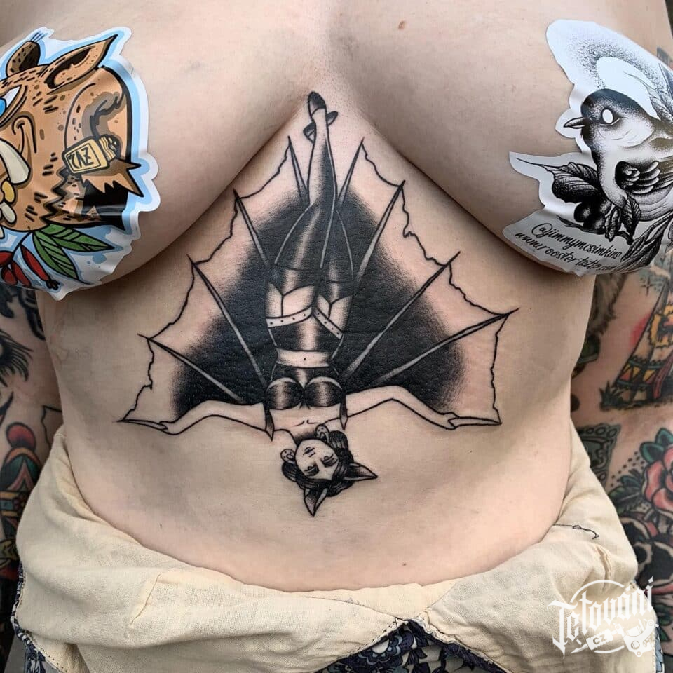 Tetování žena upírka na břichu
