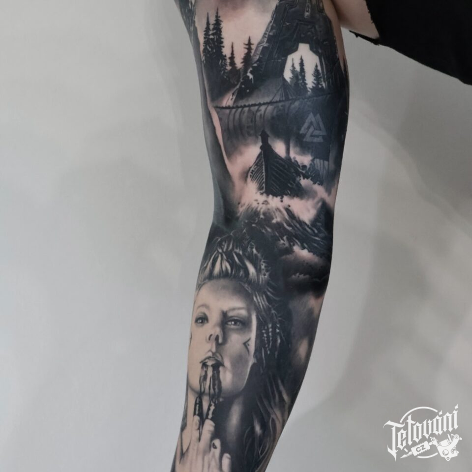 Tetování žena, vikingové na ruku