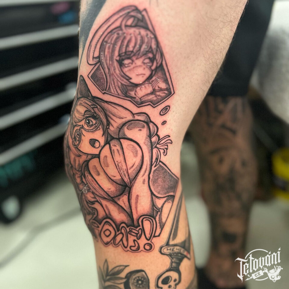 Tetování žena z filmů a pohádek anime na koleni