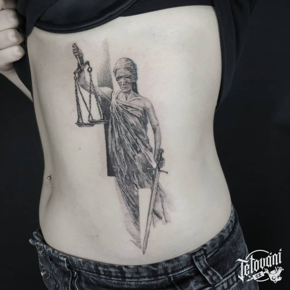 Tetování žena, znamení zvěrokruhu váhy na bok