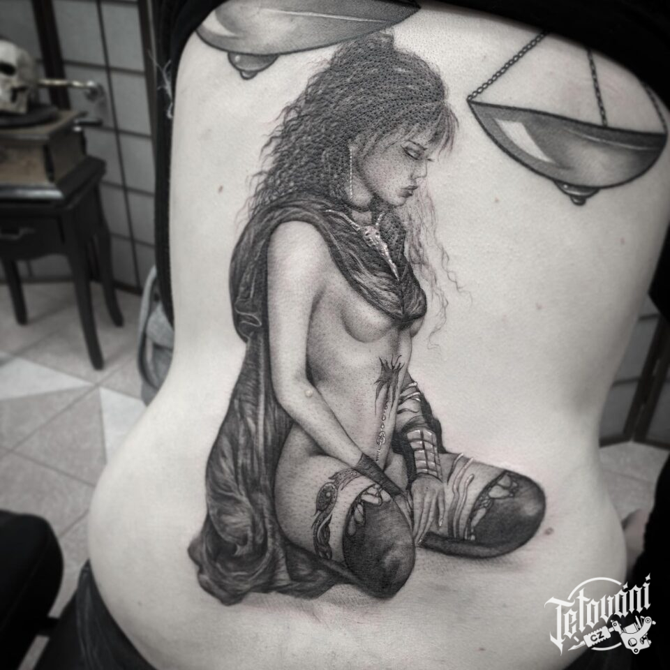 Tetování žena znamení zvěrokruhu, váhy na boku