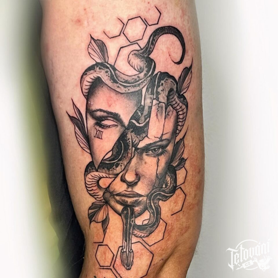 Tetování žena, zvíře had, tvary, rameno