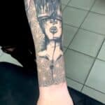 Tetování ženy s korunou, mandala na předloktí