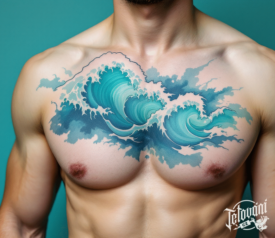 Tetování živel vlna na hrudník