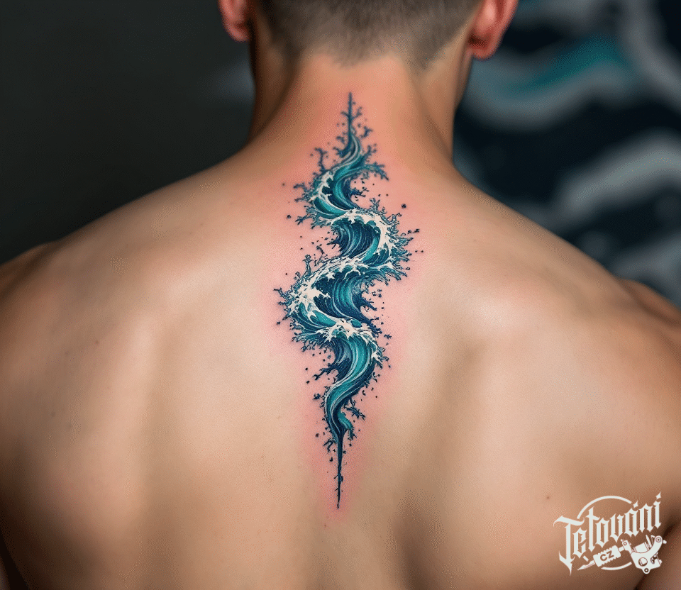 Tetování živel vlna na páteř