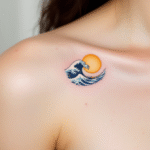 Tetování živel vlna, slunce pod klíční kost