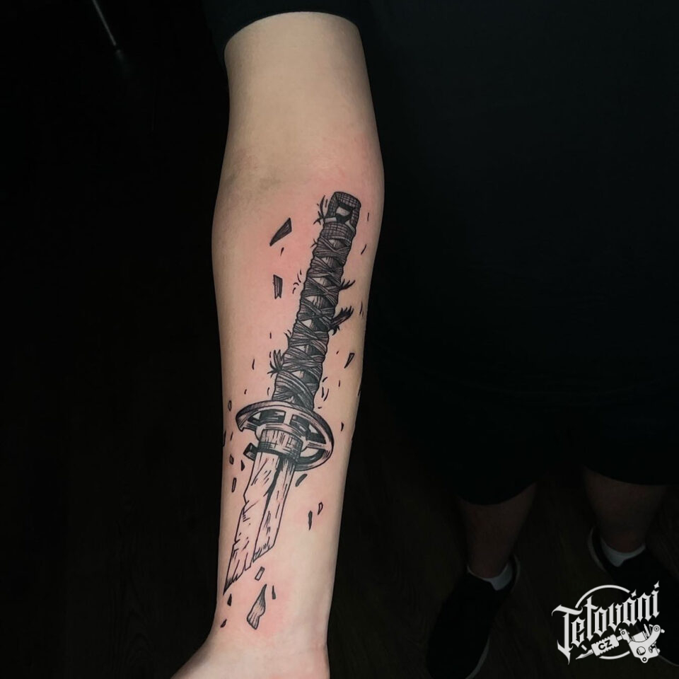 Tetování zlomený meč na předloktí