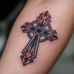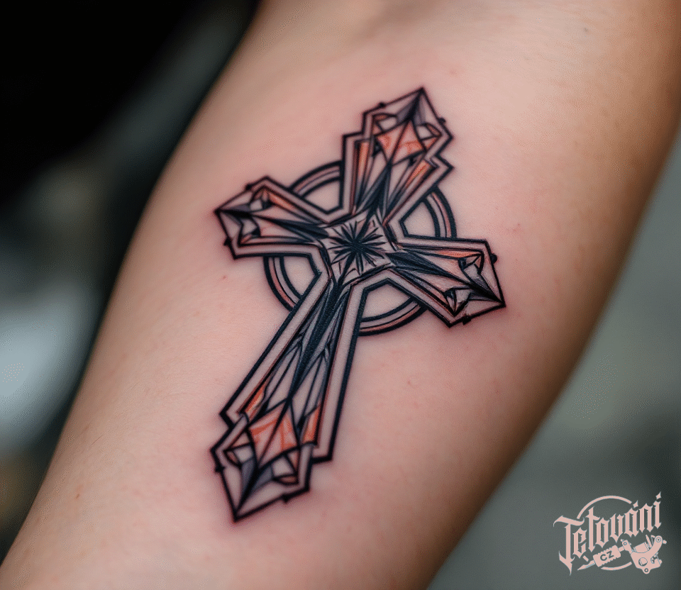 Tetování znak a symbol keltská kříž, symbolizující přírodní živly, sílu na předloktí