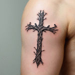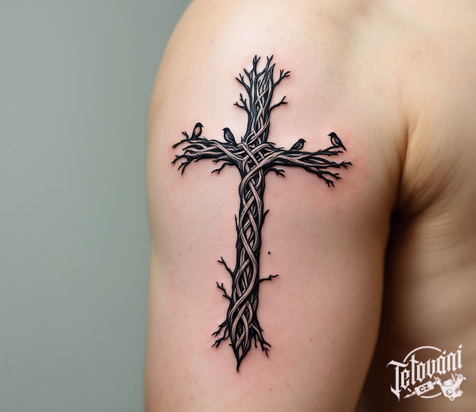 Tetování znak a symbol keltské mytologie, jednoduchý keltský kříž na rameno