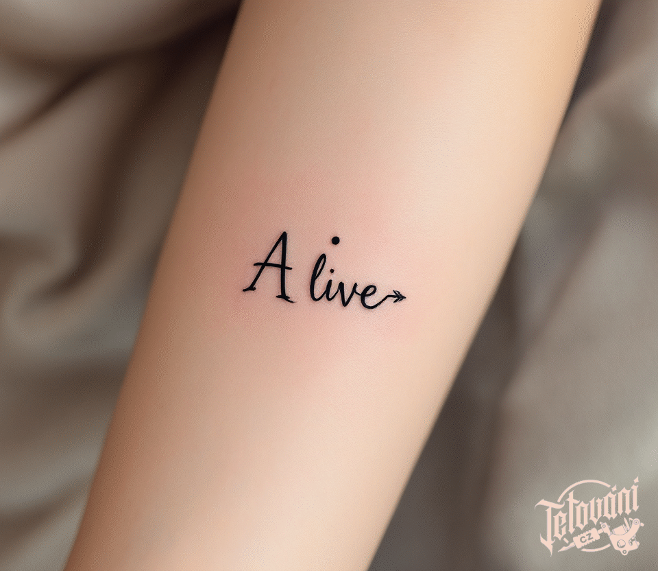 Tetování znak a symbol středník s nápisem na lýtko