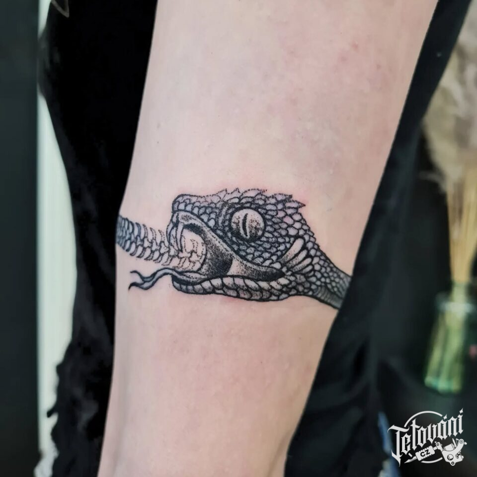 Tetování znak a symbol Uroboros na rameno