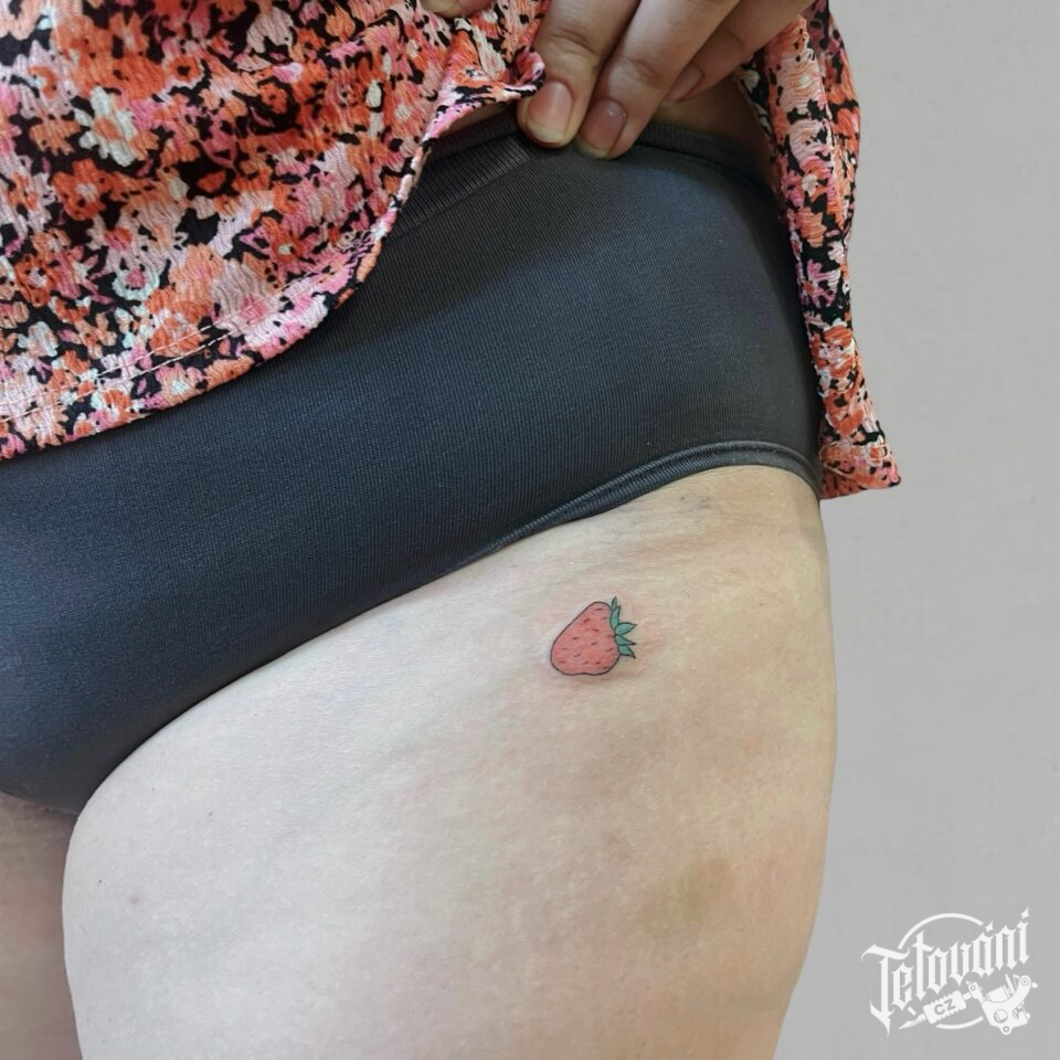 Tetování znak a symbol zdraví, jahoda na bok stehna