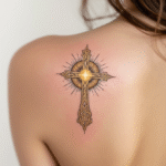 Tetování znak a symbol ženské a mužské energie, života a rovnováhy keltský kříž s kruhem na lopatku