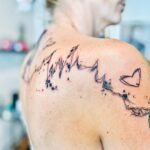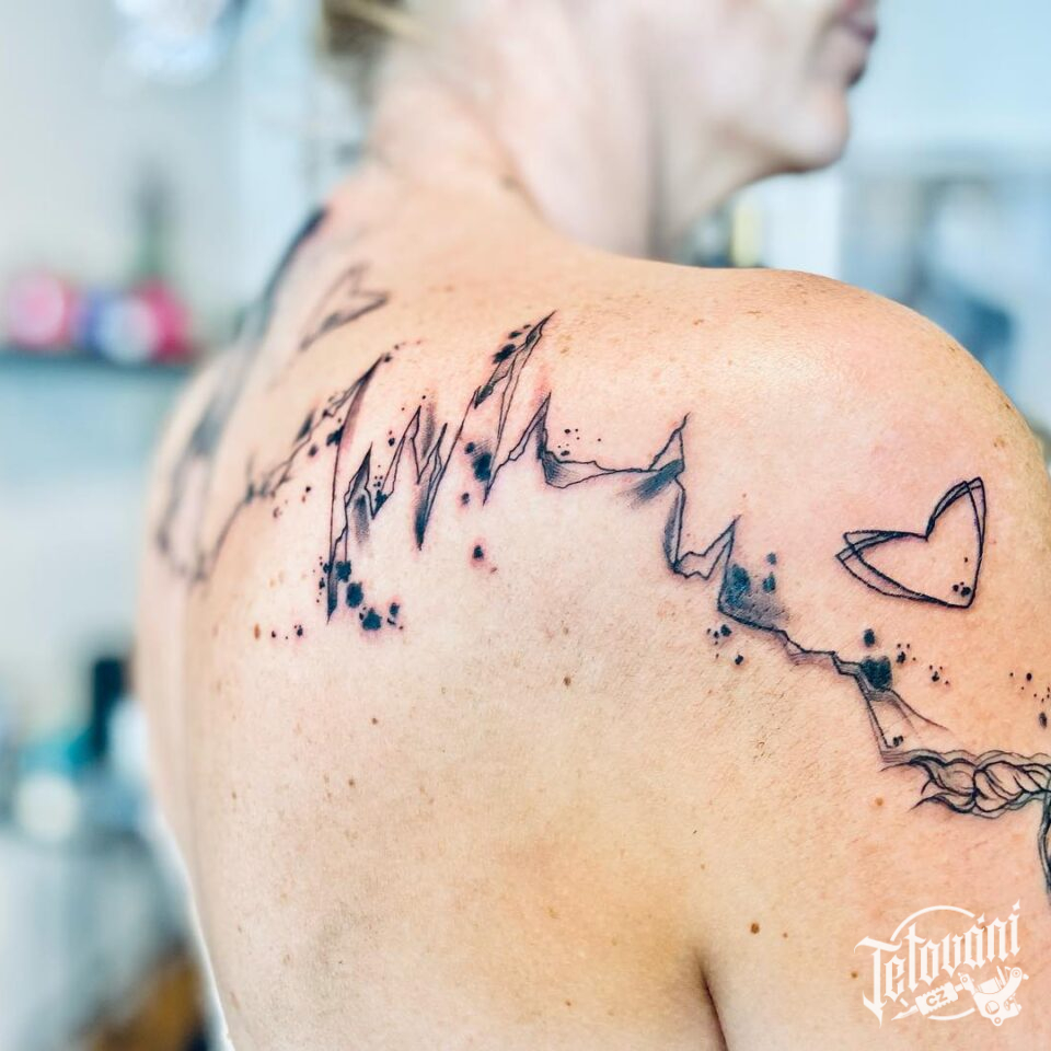 Tetování znaky a symboly, čáry, srdce na lopatku a rameno