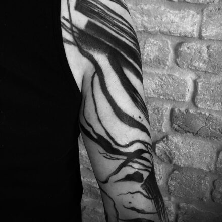 Tetování znaky a symboly, abstraktní čáry na předloktí