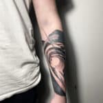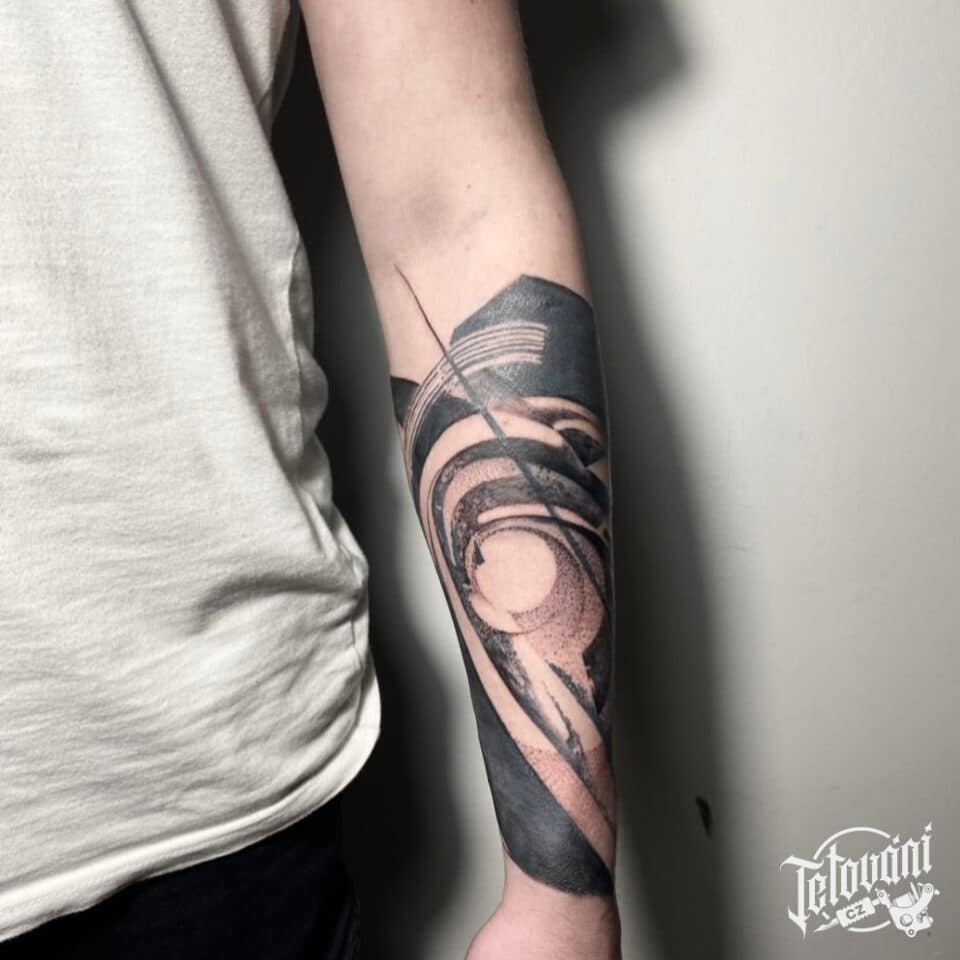 Tetování znaky a symboly, abstraktní tvary na předloktí