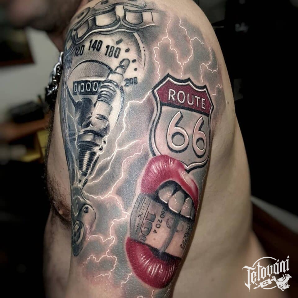 Tetování znaky a symboly auta, hodiny na rameno