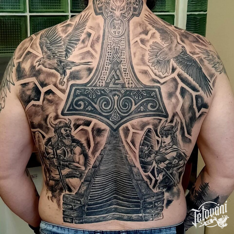 Tetování znaky a symboly, bojovníci, Vikingové na zádech