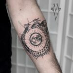 Tetování znaky a symboly, boží oko s drakem na předloktí