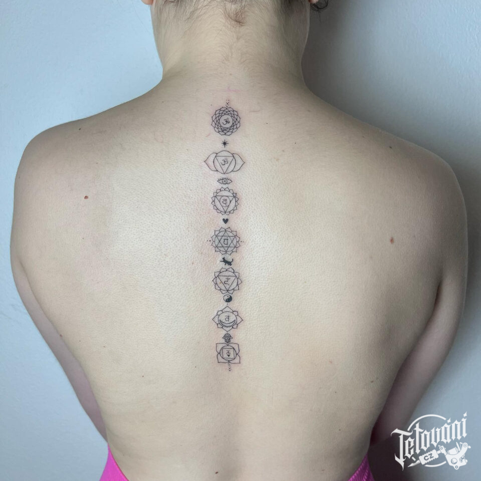 Tetování znaky a symboly, čakry na páteři