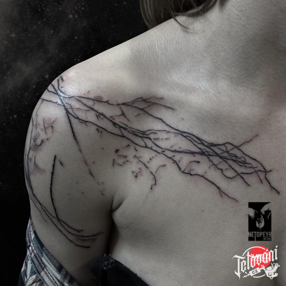 Tetování znaky a symboly, čáry na rameno a hrudník