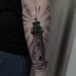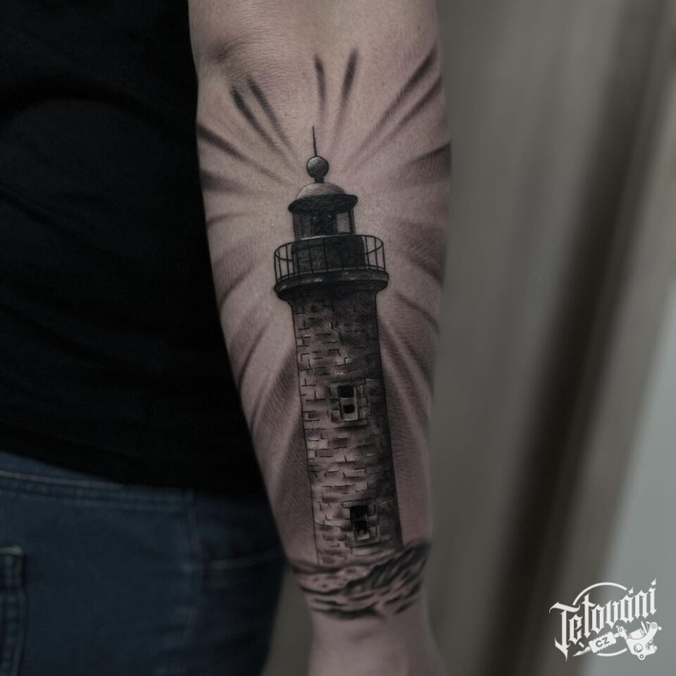 Tetování znaky a symboly cestování na předloktí