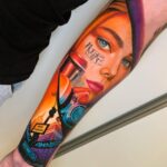 Tetování znaky a symboly, cestování, portrét ženy na předloktí