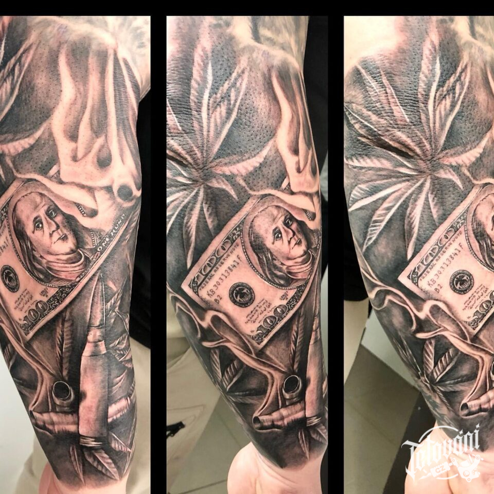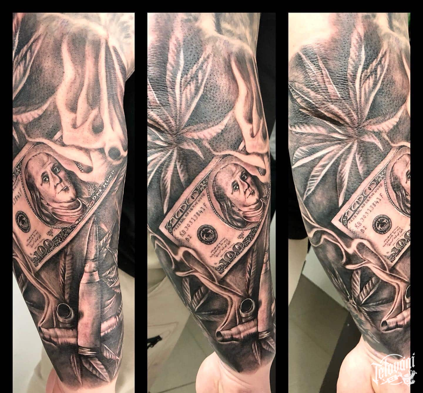Tetování znaky a symboly, dolary, náboje na předloktí
