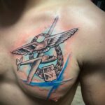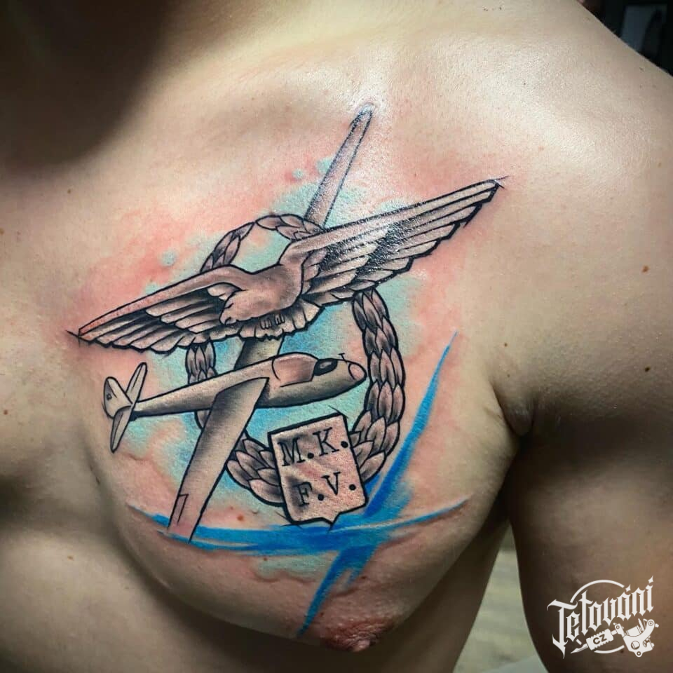 Tetování znaky a symboly, dopravní prostředek letadlo, vojáci na prso