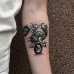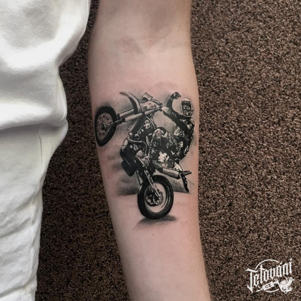 Tetování znaky a symboly, dopravní prostředek motorka s motorkářem na předloktí