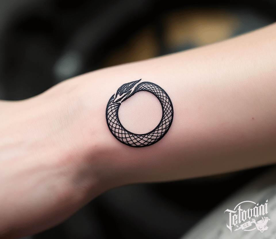 Tetování znaky a symboly, egyptská mytologie, uroboros na předloktí
